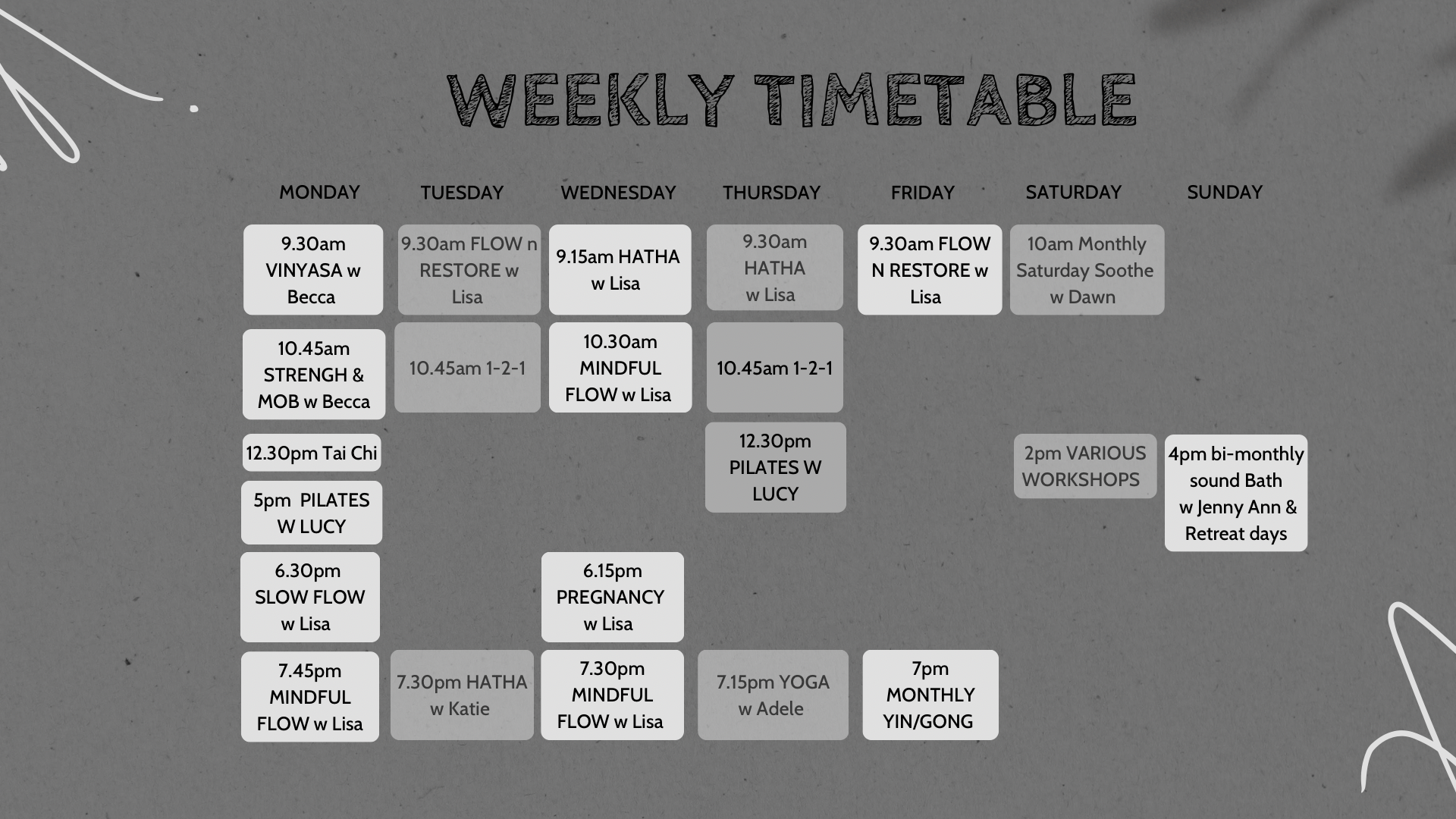 YOGA TIMETABLE FENNY COMPTON